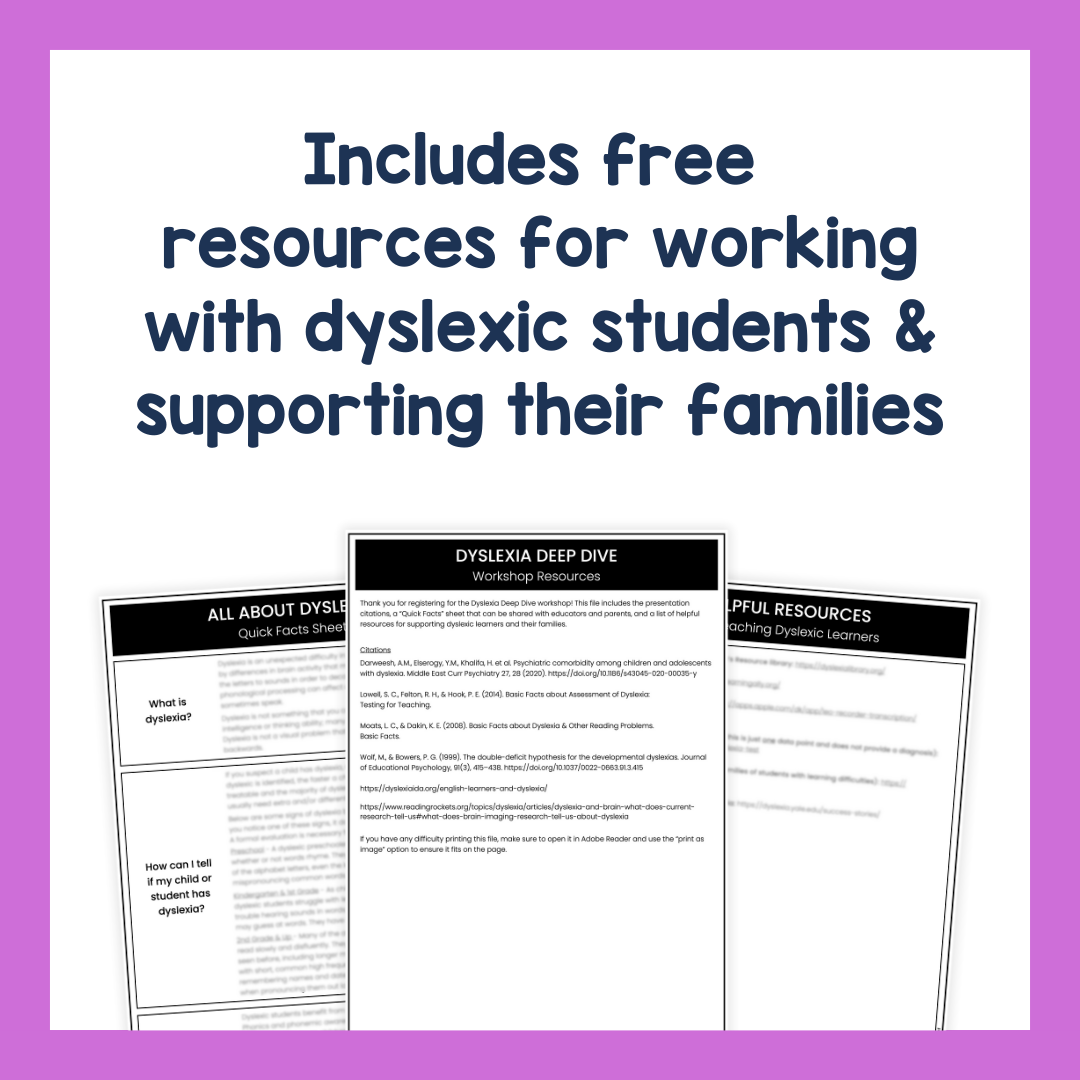 • Prerecorded 90-minute Dyslexia Deep Dive training