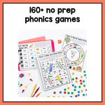 • 160+ no-prep phonics games (alphabet, CVC words, digraphs, blends, silent e)