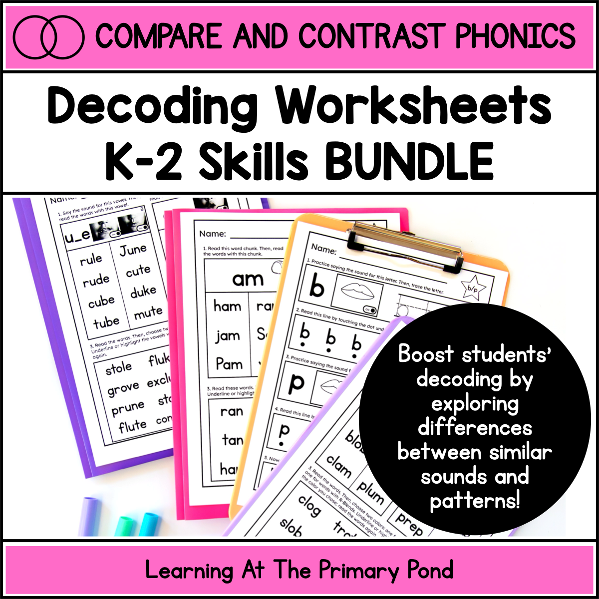 Letter Sound & Decoding Words Worksheets K-2 BUNDLE | Compare & Contrast Phonics