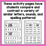 When kids are learning to read, they often mix up similar patterns or guess at words. This resource fixes these issues! On each letter sound / decoding words worksheet, students compare and contrast 2 similar sounds or patterns. A big range of Kindergarten, first grade, and second grade skills are covered in this set.
