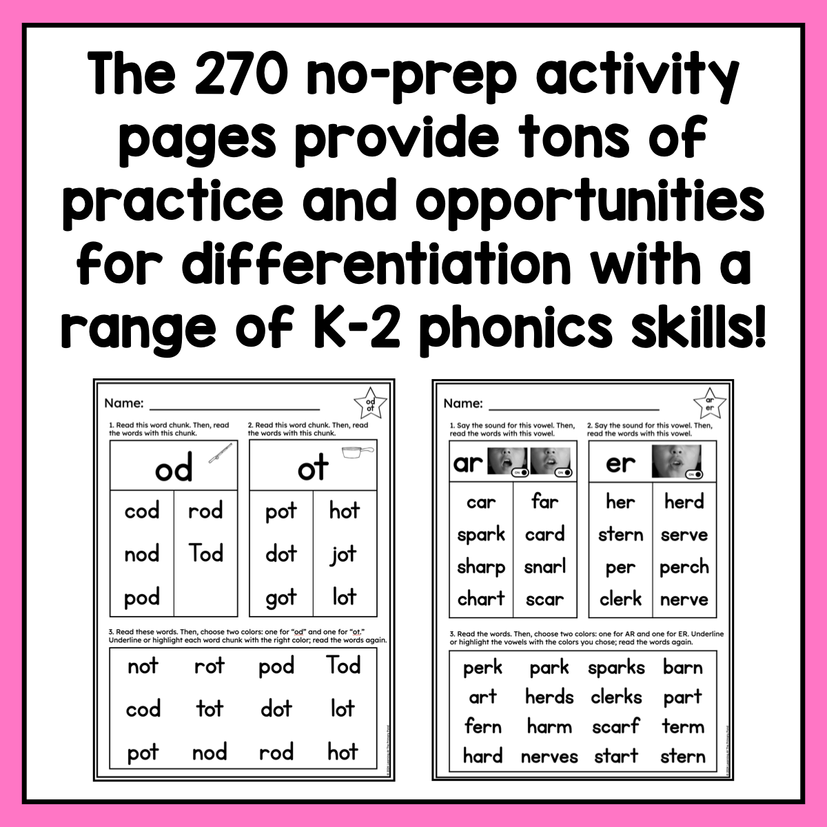 These 270 no-prep pages are easy to fit in as a quick warm-up or simple literacy center - they work with any phonics program! The range of skills make them perfect for quick differentiation!