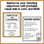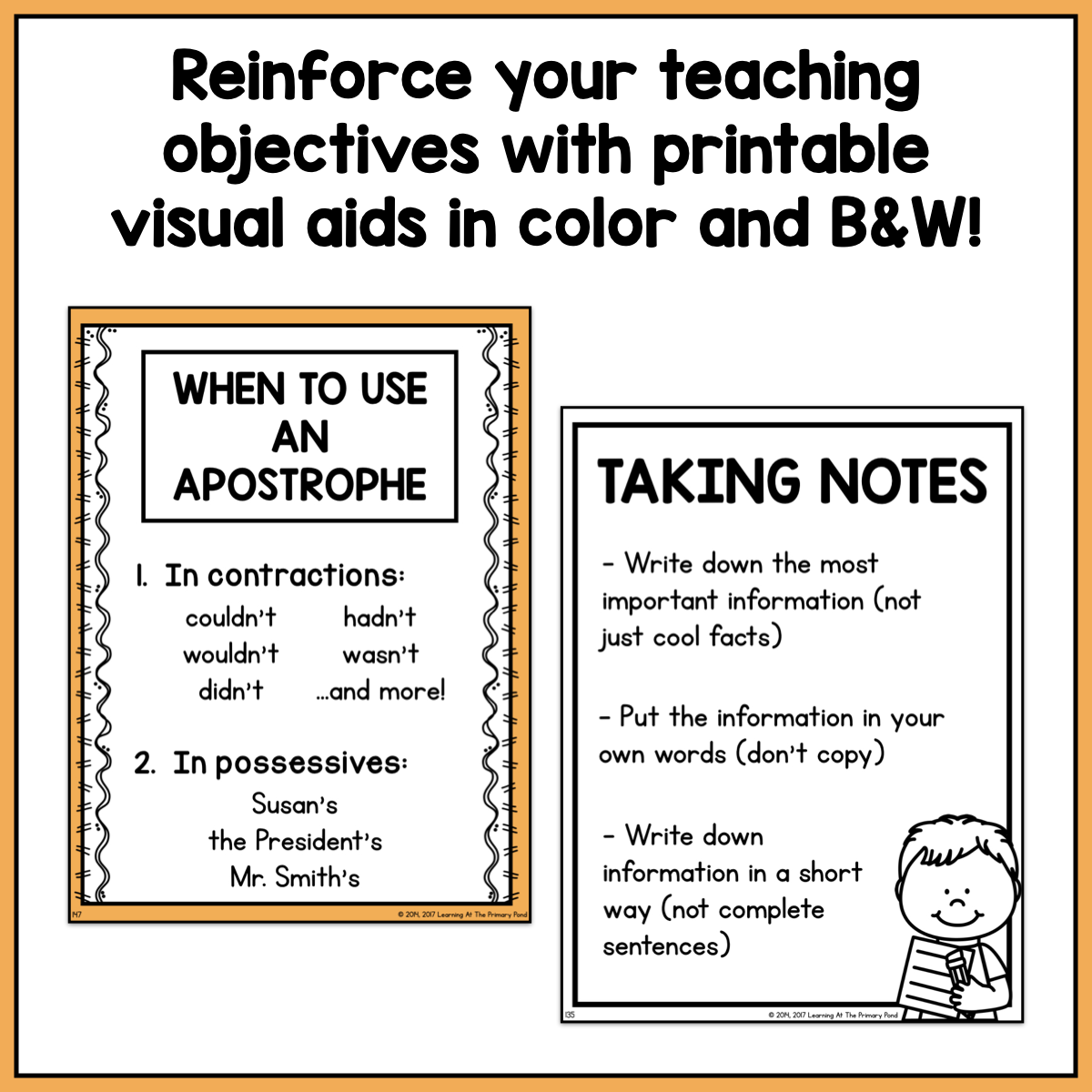 - Posters, visual aids, and materials to go with the minilessons (all color materials also have black and white versions included)