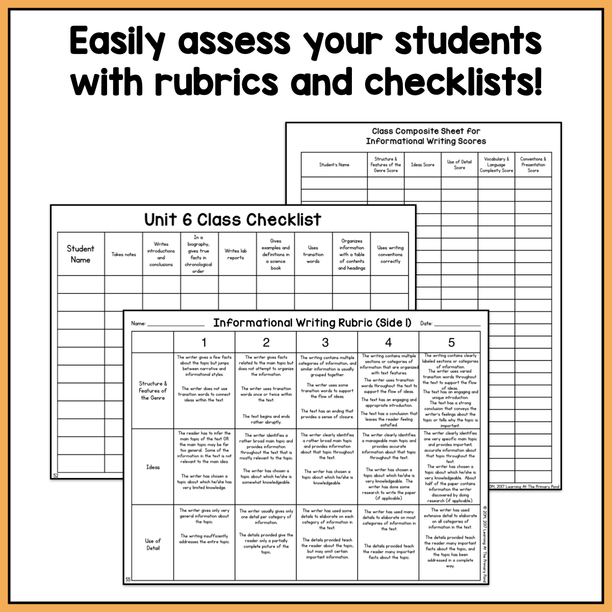 - Rubrics, anecdotal note forms, and other materials to help you get organized
