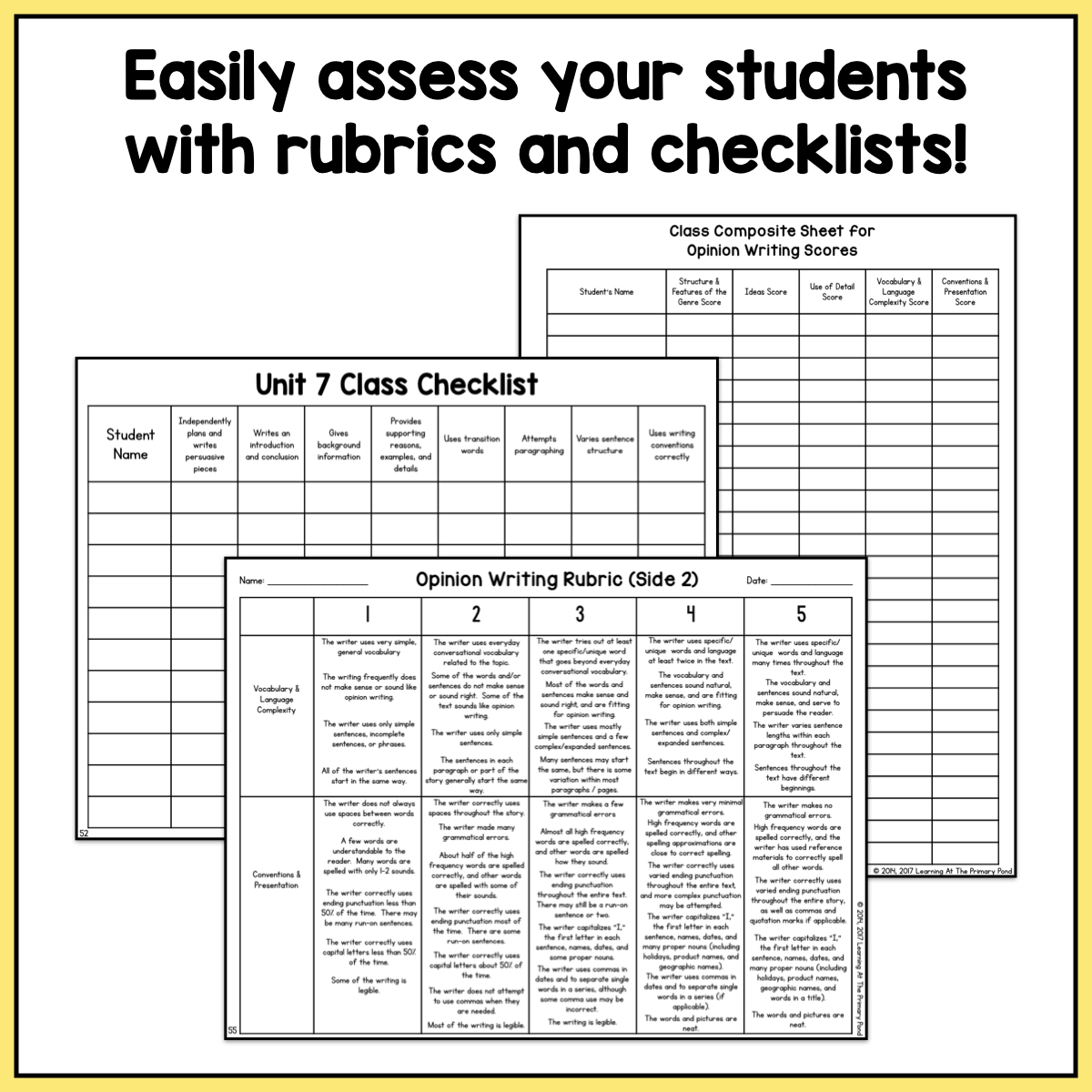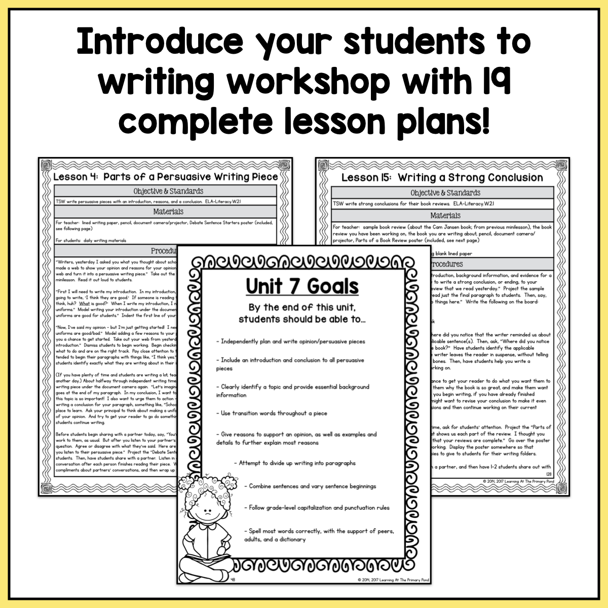 Opinion writing lessons, debate activities, book review writing lessons, writing rubrics, printable writing paper, posters and visuals, graphic organizers for planning, and more - for second grade students!